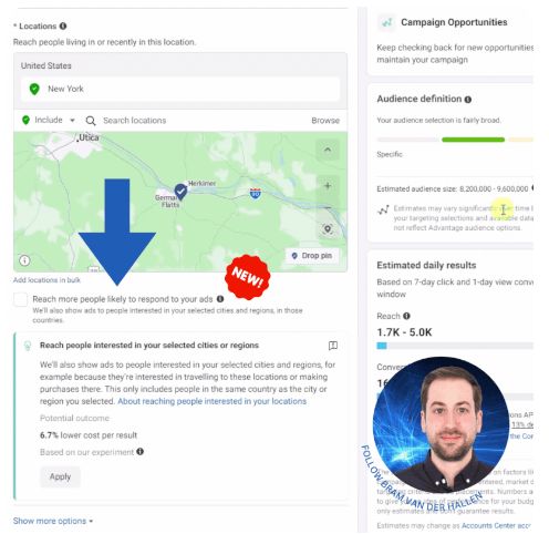 Désormais, lorsque vous ciblez 🎯 des villes ou régions spécifiques, Meta peut activer une option permettant d'afficher vos annonces à des personnes en dehors de la zone géographique ciblée.